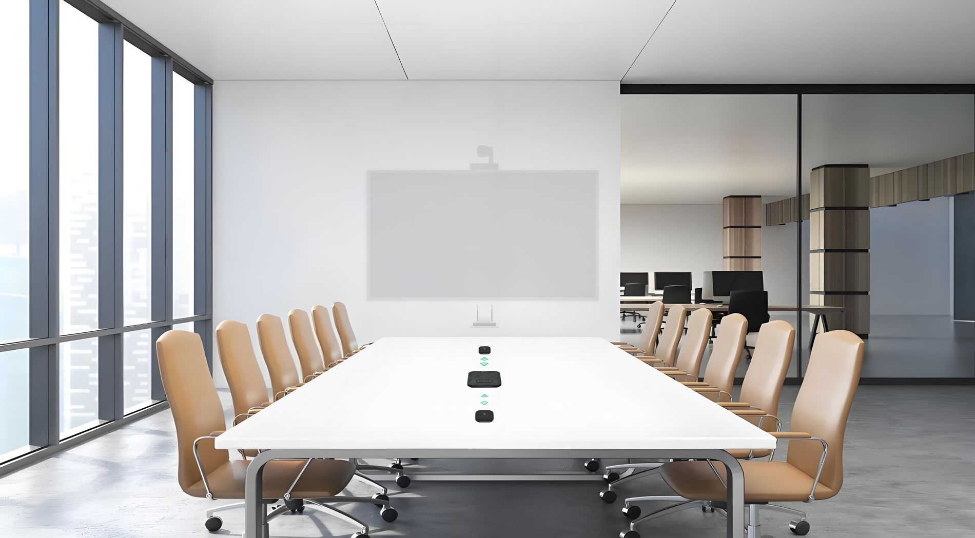 搭配两个无线扩展麦克风,参会者可以将扩展麦放在任何在触手可及的位置。